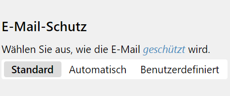 Verschlüsselung und Signatur Bestimmen Sie, ob Sie die E-Mail verschlüsseln und/oder signieren wollen. Standard nutzt die Unternehmenseinstellungen.
