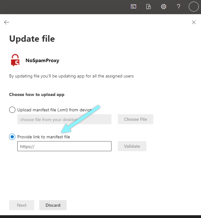 - Select Provide link to manifest file.