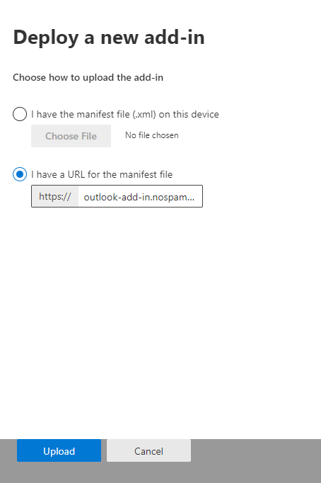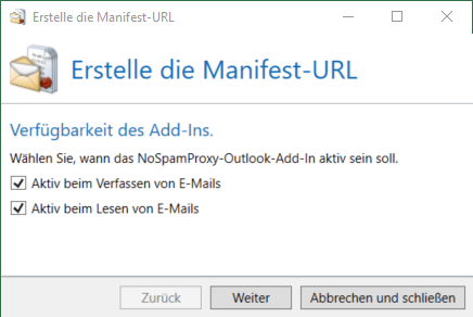 NOTE: The manifest URL ensures that the functionality of the Outlook add-in is available in the read or write view or in both views.